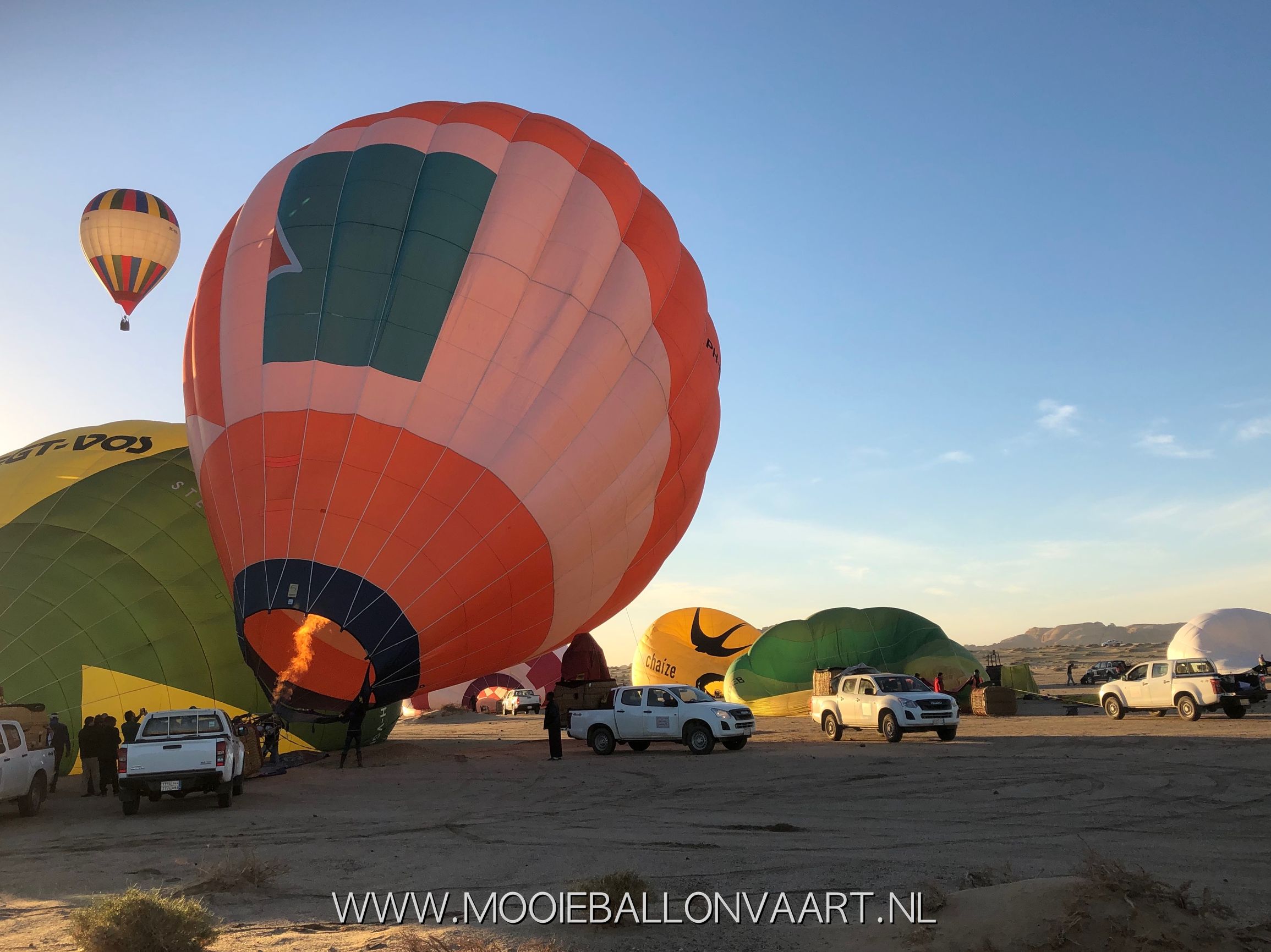 Ballonvaren boven Saoedi-Arabië. De eerste ballonvaart voor ons vond plaats op 1 februari 2019. In januari 2019 maakte Rien Jurg Promoties de eerste ballonvaart boven Saoedi-Arabië om de omgeving te verkennen. Wij werden samen met nog 14 andere ballonvaarders uitgenodigd om deel te nemen aan het eerste luchtballon evenement in Saoedi-Arabië genaamd Winter at Tantora. Dit evenement is georganiseerd door de autoriteiten van Saoedi-Arabië om zo de omgeving te promoten voor toerisme. Het luchtballon evenement was een onderdeel van meerdere activiteiten die georganiseerd werden al vanaf december 2018. Voor ons was deze eerste ballonvaart al erg speciaal en we hadden het geluk dat wij na deze vaart nog 4 ballonvaarten mochten maken! Wij hebben bij deze ballonvaart ook een timelapse film gemaakt. Deze kunt u via deze link bekijken!