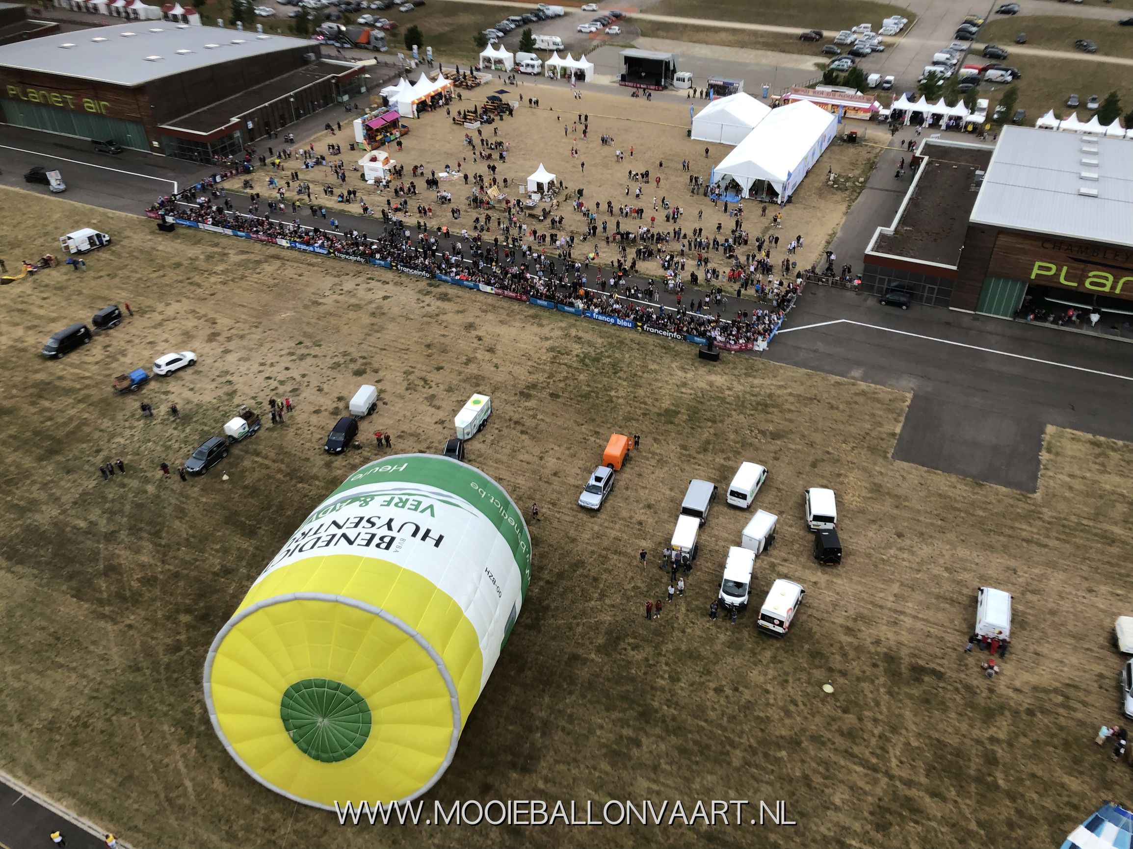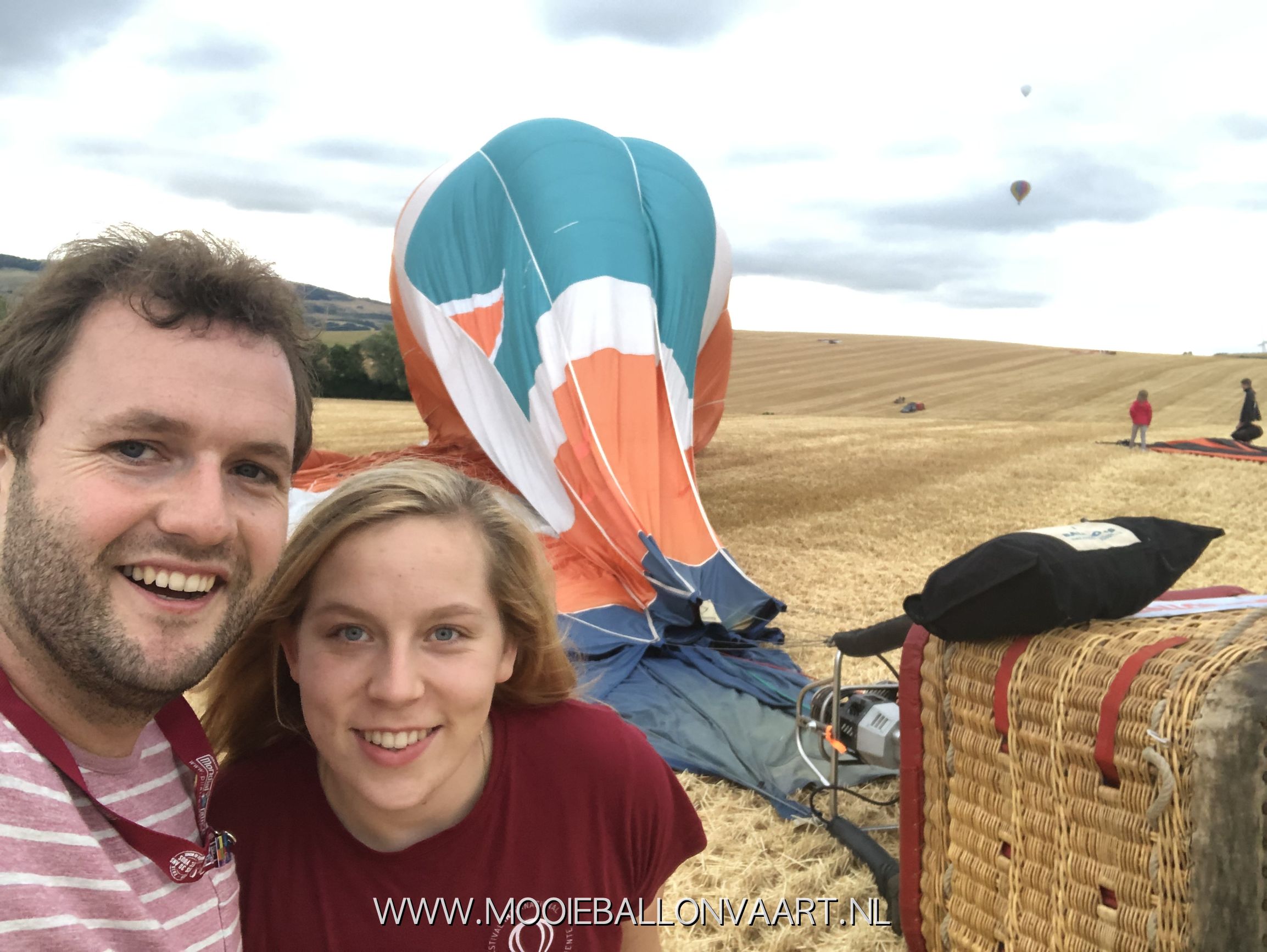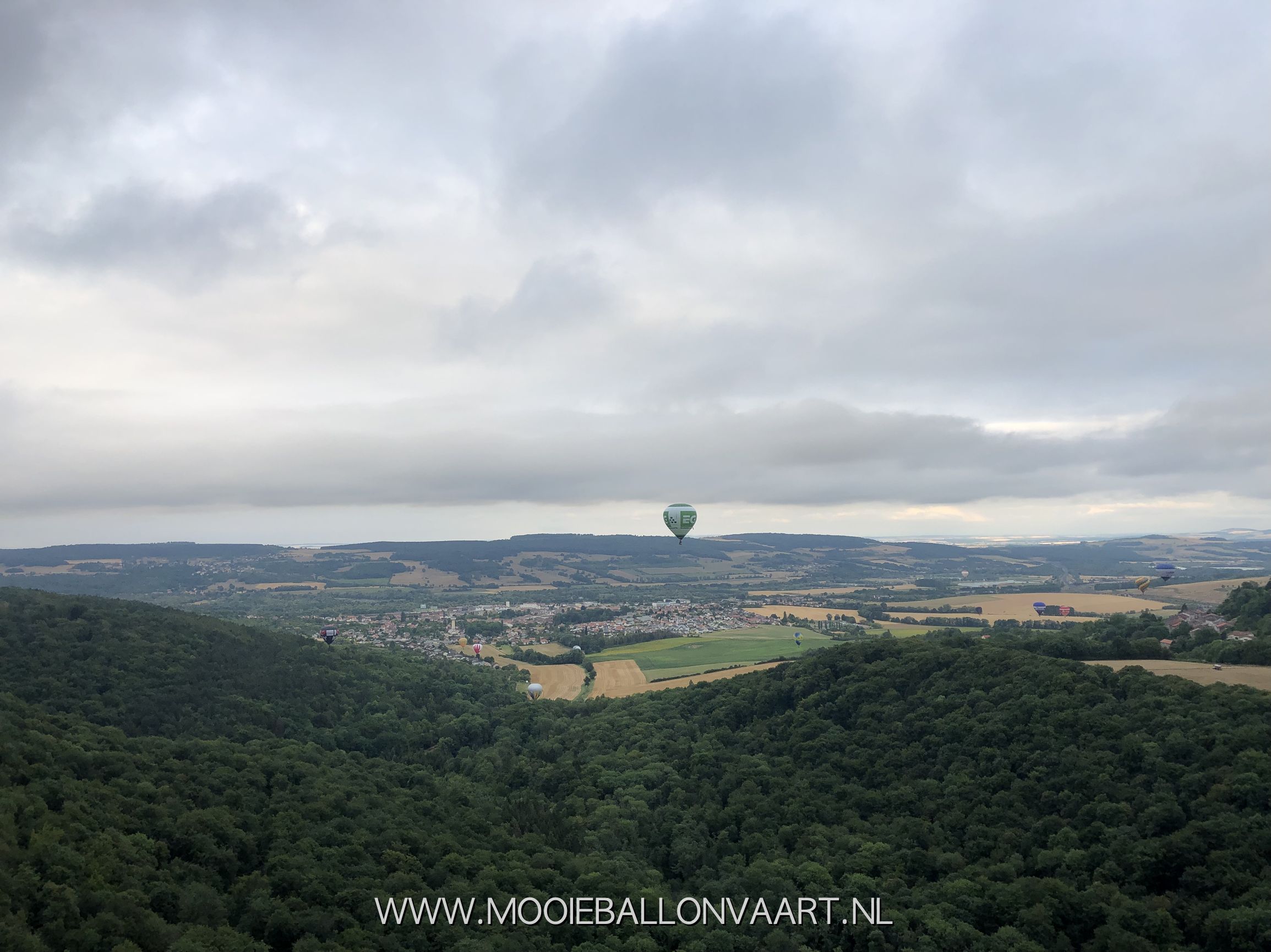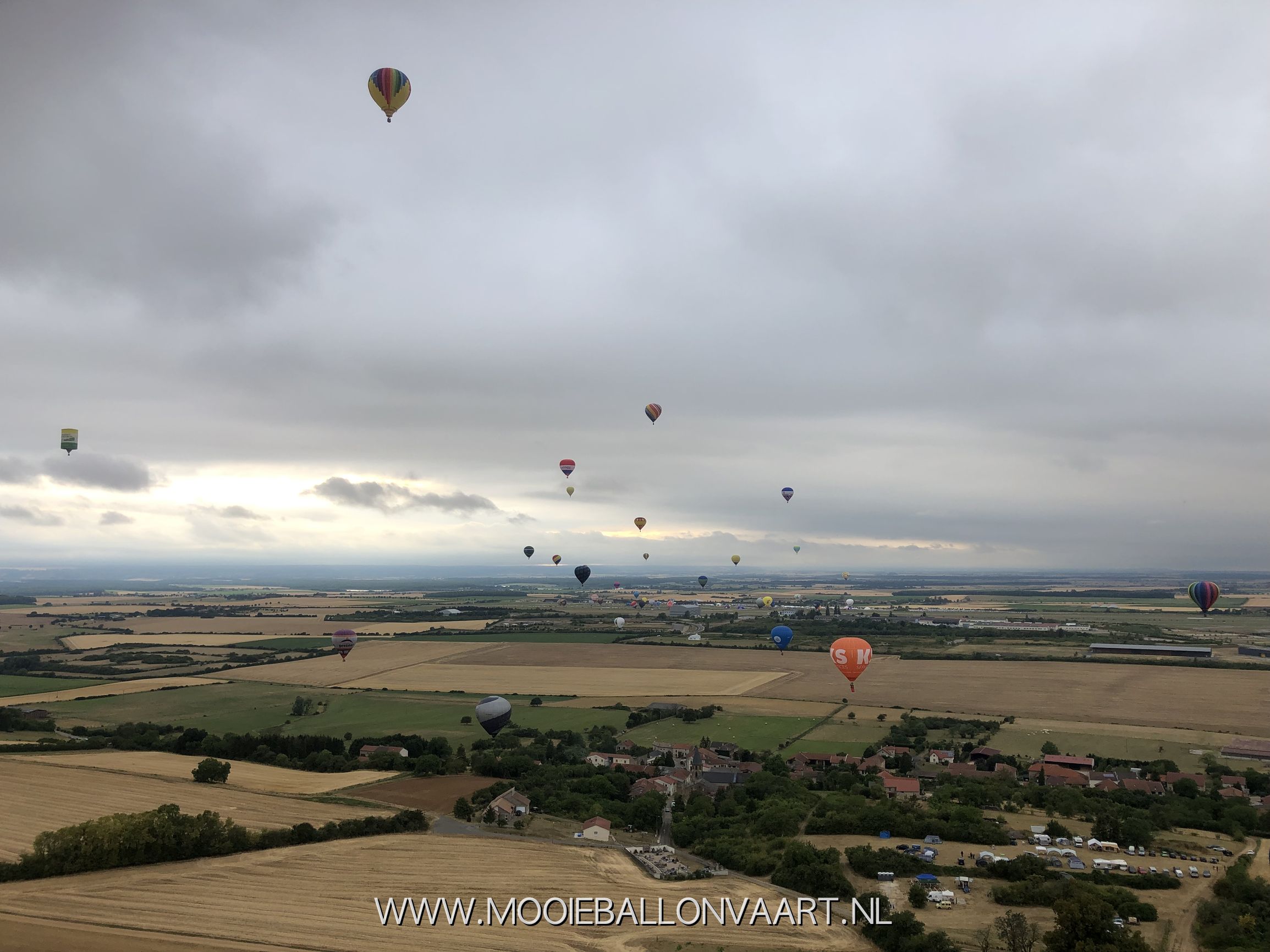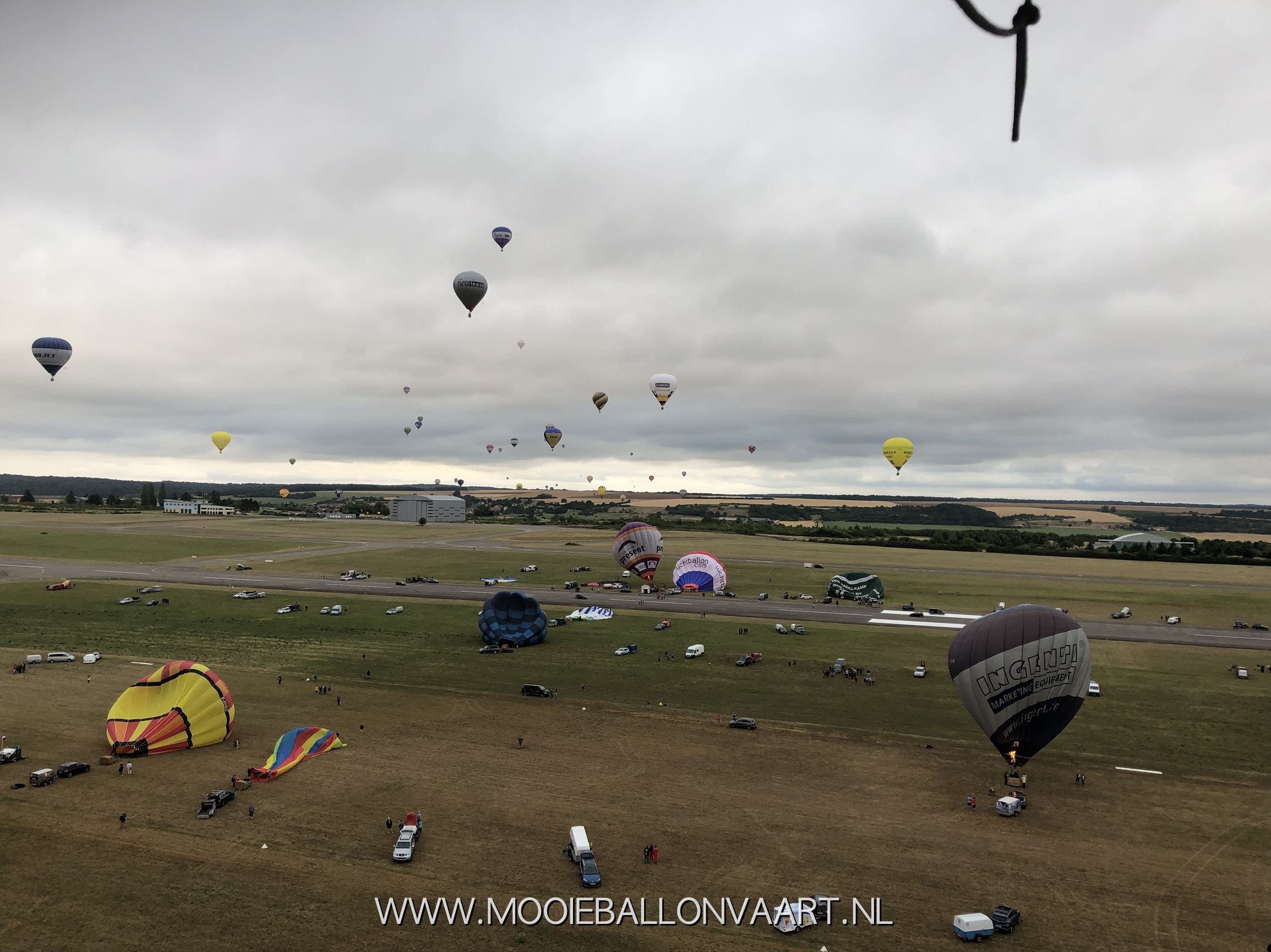 De eerste ballonvaart in Frankrijk. Voor Anne was dit zijn eerste vaart in Frankrijk. Het eerste weekend van het festival op het vliegveld van Chambley-Bussieres stond er een behoorlijke wind. Wij moesten daardoor eventjes wachten om de lucht in te kunnen gaan. Toen wij uiteindelijk het groene licht kregen bliezen wij onze luchtballon op en vertrokken wij naar het zuiden. Samen met Marieke Schoonridder en Marit Zuurveld maakte wij een ballonvaart van ongeveer 40 minuten om vervolgens bij een aantal andere Nederlandse ballonteams in het veld te landen. Een prachtige eerste ballonvaart in Frankrijk!