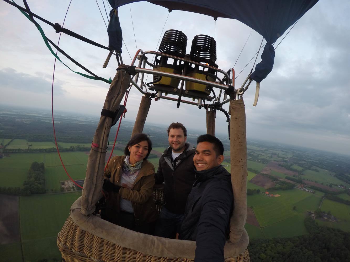 Woensdag ochtend hebben wij een ballonvaart gemaakt vanuit Laren naar Enter. Aan boord hadden we ditmaal 2 piloten. De vrouwelijke passagier is een pilote uit Maleisië. Ze reisden afgelopen week door Europa en verbleven bij een ballonvaarder in Nederland. Woensdag ochtend maakten zij een ballonvaart over het Nederlandse landschap samen met Anne. In Maleisië zijn de landingsmogelijkheden een stuk beperkter en varen zij met veel minder wind dan wij hier in Nederland. Ze vonden het een hele ervaring. Na de trip in Nederland reisden ze naar Spanje waar ze ook een ballonvaart gingen maken met een Spaanse collega.